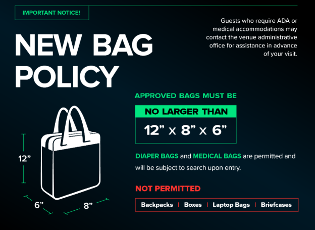No limit on the number of guests that may attend **NOTE: New bag size policy for guests |